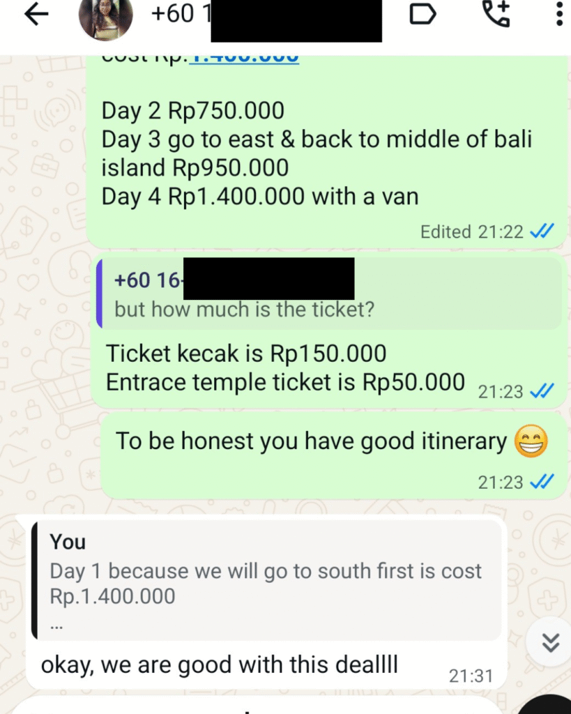 Booking is easy via WhatsApp. Weβll also keep you updated about the weather and other important info. Once you arrive, just mention your name and that you booked through Book Trip Bali. Simple and safe!